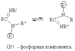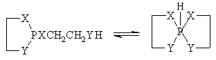 Циклические средние фосфиты и амидофосфиты с протонодонорной группой в боковой цепи могут частично или полностью превращаться в гидроспирофосфорановые формы: