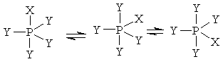 Если радикалы R и R' одинаковые, то процесс является вырожденным. Особый вид таутомерии (псевдовращение) характерен для фосфоранов, которые способны обменивать у атома Р заместители, занимающие аксиальные и экваториальные положения: