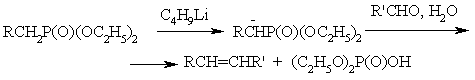 В большинстве фосфорильных соединений со связью С–Р a-метиленовые протоны фосфорильной группы подвижны, что приводит к их депротонированию под действием сильных основании. Образующиеся карбанионы при взаимодействии с альдегидами и кетонами образуют олефины (Хорнера реакция):