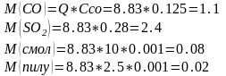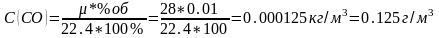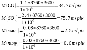 Оскільки зміст газоподібної забруднюючої речовини оксиду вуглецю та сірчистого ангідриду відбито в об’ємних процентах, переведемо спочатку концентрацію із об’ємного в масову, виходячи із мольної маси компонентів μ та його мольного об’єму.