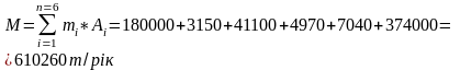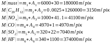 Визначимо приведену масу (М) викиду в атмосферу з урахуванням агресивності за рік по кожному забруднювачу: