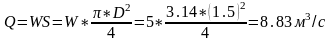 Визначимо об’ємну витрату газу як добуток швидкості на площу виходу з труби:
