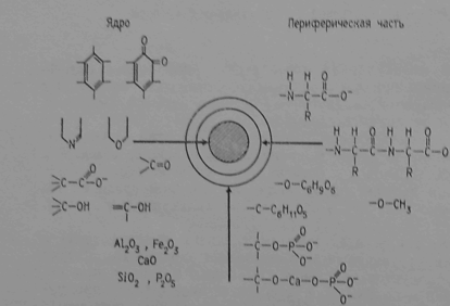 Многообразие органоминеральных соединений в почвах обусловлено тем, что в органической части почвы сосредоточен большой набор функциональных групп, среди которых наибольшее значение имеют карбоксильные, фенольные и аминогруппы. Углеродные скелеты фрагментов гуминовых и фульвокислот, идентифицированы по продуктам их окисления.