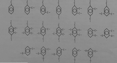 Рисунок 2 - Главные типы углеродных скелетов, идентифицированных в продуктах окисления гумусовых кислот [7]