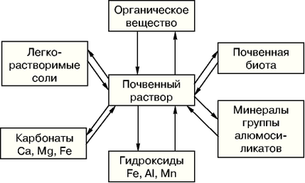 Рисунок 7- Реакция взаимодействия между почвенным раствором и другими компонентами почвы [4]