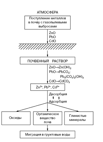 Одним из типов антропогенно-технических воздействий является загрязнения почвы тяжелыми металлами (ТМ). Этот вид загрязняющих веществ начали изучать одним из первых. К тяжелым металлам обычно относят элементы, которые имеют атомную массу более 50. Из атмосферы в почву тяжелые металлы попадают чаще всего в форме оксидов, где постепенно растворяются, переходя в гидрооксиды, карбонаты или в форму обменных катионов.