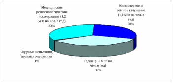 Рис.2. Дозовая нагрузка населения от разных источников радиации