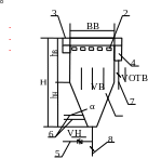 Площади нижнего сечения смесителя ƒН, м2 определяется по внешнему диаметру подводящего осветляемую воду трубопровода ДН, мм (ДН=ВН).