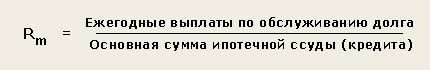 Так как большинство объектов недвижимости покупается с помощью заемного и собственного капитала, коэффициент капитализации должен удовлетворять требованиям доходности на обе части инвестиций. Величина данного коэффициента определяется методом связанных инвестиций или техникой инвестиционной группы. Коэффициент капитализации для заемных средств называется ипотечной постоянной и рассчитывается по следующей формуле: