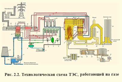 Основными элементами рассматриваемой электростанции являются котельная установка, производящая пар высоких параметров; турбинная или паротурбинная установка, преобразующая теплоту пара в механическую энергию вращения ротора турбоагрегата, и электрические устройства (электрогенератор, трансформатор и т.д.), обеспечивающие выработку электроэнергии.