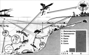 человек. Люди, питаясь рыбой, получали сильнейшие отравления. С 1955 по 1959 г. каждый третий ребенок рождался с психическими и физическими аномалиями. Рыбный промысел в заливе до сих пор запрещен. Полагают, что на дне залива находится около 600 т ртути. Это пример загрязнения и кумуляции ртути по цепи питания.