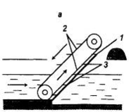 Решетки очищают граблями, которые могут быть установлены по-разному (рисунок 1). Ширина прозоров в решетке равна 16-19 мм. Скорость сточной воды между стержнями принимается равной 0,8-1 м/с.