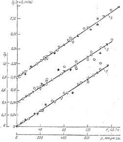 С помощью СКР исследовано несколько газов промышленной чистоты. Давление, а следовательно, и плотность (Tconst) изменялись по величине на три порядка. В качестве источника возбуждающего излучения использовался рубиновый лазер типа TRG модели 104А с модулированной добротностью ( = 694,3 нм). Энергия импульса излучения была 1 кДж при длительности около 10 нс (по полуширине), что соответствовало пиковой мощности 100 МВт. Излучение было линейно поляризовано в вертикальной плоскости. В экспериментах использовался спектрограф модели М-401. Регистрация спектров КР на выходе спектрографа осуществлялась с помощью высокочувствительного ФЭУ (модель RCA № 031000) и высокоскоростного осциллографа. Ширина входной щели спектрографа регулировалась в пределах 25 – 100 мкм.