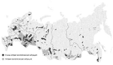 исунок 3. Регионы с очень острой и острой экологической ситуацией.