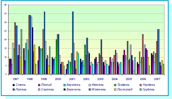 Рис. 3.1 Динаміка кількості НС природного характеру за 1997 - 2007 рр