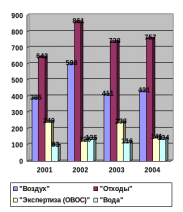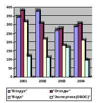 Рисунок 2. Распределение количества предписаний по сферам воздействия в 2001 – 2004 гг.
