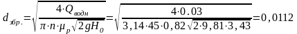 Діаметр отворів збризкувачів знайдемо за формулою:
