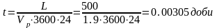 t – тривалість переміщення води від місця випуску стічних вод до розрахункового створу: