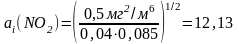 | Азот (IV) оксид (Азота диоксид) | 12,13 | 1 | 1,5 | 1 | 1 |