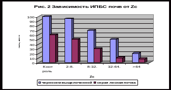 Различные типы почв при одинаковом характере и степени загрязнения проявляют различную устойчивость. Для серой лесной почвы средний уровень загрязнения уже очень опасен, в этом случае восстановление биоценотических функций затруднено или практически невозможно. В черноземе выщелоченном снижение ИПБС на 50% происходит только при высоком уровне загрязнения.