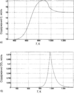 Снижение содержания С02 при температуре выше 1000 К связано со взаимодействием графита с С02 по реакции