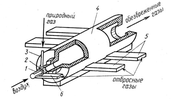 Институтом газа АН УССР разработана и успешно прошла промышленные испытания установка очистки газовых выбросов лакокрасочного производства. Установка представляет собой циклонную топку (рис. 4), скомпонованную с газовой горелкой и камерой разбавления газов после их очистки. Воздух, загрязненный токсическими примесями органических веществ (толуол ксилол и др.), поступает в вихревую двух горелку 2 по каналу 6 и непосредственно во внутреннюю полость печи 4 по тангенциальным каналам 5. Природный газ подается в горелку 2 по трубе 3. Время пребывания в полости (не менее 0,5 с) и контакт их с раскаленными стенками камеры обеспечивают полноту их сгорания. Атмосферный воздух подается по центральной трубе 1 горелки 2 только при обезвреживании выбросов, содержащих менее 15% кислорода. Запуск установки, вывод на рабочий режим и его поддержание осуществляются с помощью блока автоматического управления и регулирования установки.