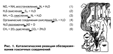 Каталитическая очистка токсичных соединений основана на протекании ряда химических реакций.