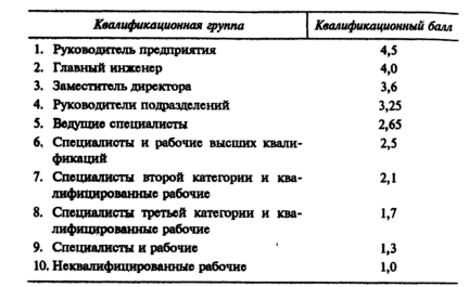 Квалификационный уровень работника предприятия устанавливается всем членам трудового коллектива и определяется как частное от деления фактической заработной платы работника прошедший период на сложившийся на предприятии минимальный уровень заработной платы за тот же период. Затем все работники предприятия распределяются по десяти квалификационным группам исходя из квалификационного уровня работников и квалификационных требований к работникам различных профессий.