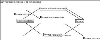 Основными субъектами рыночной экономики являются домохозяйства и фирмы. Домохозяйства предъявляют спрос на потребительские товары и услуги, выступая одновременно поставщиками экономических ресурсов. Фирмы предъявляют спрос на ресурсы, предлагая, в свою очередь, потребительские товары и услуги. Поведение основных экономических агентов может быть выражено кругооборотом спроса и предложения. При всей , условности схемы кругооборота она отражает главное — в развитой рыночной экономике существует постоянное взаимодействие спроса и предложения: спрос рождает предложение, а предложение развивает спрос.