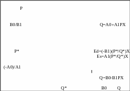 спрос: E(D)=-b1(p*/Q*) (2/2), где p*, Q* — равновесная цена и количество.