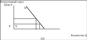 2. Неэластичный спрос (Ed<1). Если спрос неэластичен, уменьшение цены приведет к уменьшению общей выручки. Расширение продаж оказывается недостаточным для компенсации снижения выручки, получаемой с единицы продукции, и в результате общая выручка уменьшается. Обратное утверждение тоже верно,