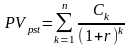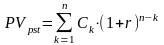 Приведенная стоимость денежного потока постнумерандо в общем случае может быть рассчитана по формуле: