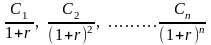 Пусть С1, С2,….Сn - денежный поток; r - коэффициент дисконтирования. Поток, все элементы которого с помощью дисконтирующих множителей приведены к одному моменту времени, а именно - к настоящему моменту, называется приведенным. Требуется найти стоимость данного денежного потока с позиции будущего и с позиции настоящего.