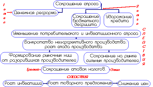 На первом и втором этапе используются рычаги, снижающие совокупный спрос, на третьем - рычаги, стимулирующие рост товарной массы.