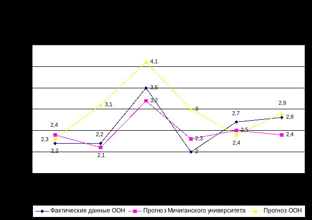 | Годы | Фактические данные | Прогноз Мичиганского университета | Прогноз ООН | ||||||