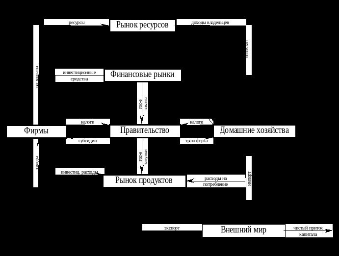 Таким образом, опты государственного регулирования рыночной экономики свидетельствует о том, что оно должно основываться на системном научном прогнозировании, которое позволяет на базе полученной информации о прошлом и настоящем состоянии экономики предположить альтернативные пути ее развития в предстоящем периоде. В основе рыночной экономики лежит преимущественно кейнсианская концепция, предусматривающая влияние государства на макроэкономические показатели. В связи с этим экономическое прогнозирование В США, как и в других развитых странах, построено на формировании спроса (личное потребление, государственные расходы, капиталовложения и экспорт) и предложения (выпуск товаров и услуг, а также строительство), что соответствует макроэкономической модели кругооборота ВНП.