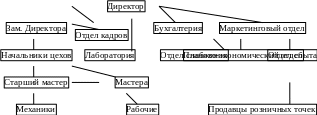 Итак начнем анализировать внутреннюю среду нашей фирмы. Начнем с персонала. Структура предприятия у нас не иначе как вертикальная, что затрудняет оперативность принятия решений, и продвижение менеджеров по службе.