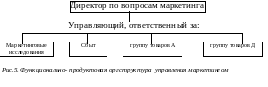 Чаще применяется комбинация указанных принципов организации, например, функционально-продуктовая (товарная), функционально-рыночная, продуктово-рыночная и функционально-продуктово-рыночная структуры управления маркетингом.