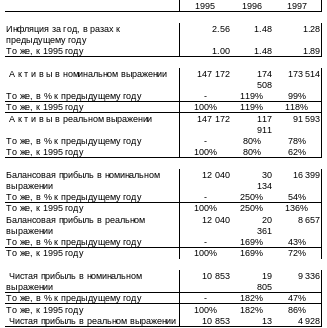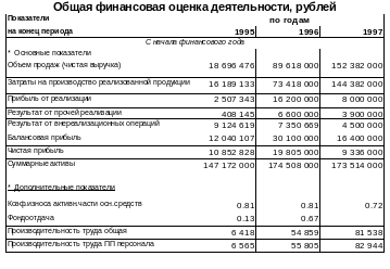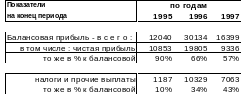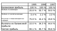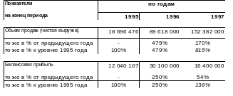 Несмотря на то, что объем продаж значительно вырос в период с 1995 по 1997 год как в относительном, так и в абсолютном выражении, балансовая прибыль за этот же период выросла значительно меньше.