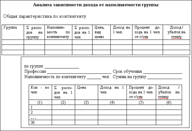 Рис. 4. Форма представления данных для рассмотрения зависимости дохода от наполняемости группы