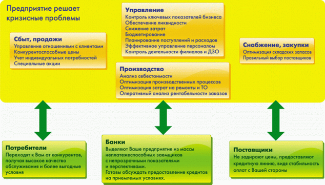Многие предприятия, подвергшиеся шоковому воздействию кризисных факторов, остро нуждаются в срочных мерах по выходу из сложившейся ситуации с минимальными потерями. Другие предприятия, в меньшей степени, чем конкуренты, испытавшие на себе влияния кризиса, стремятся принять срочные меры для получения конкурентных преимуществ и увеличения рыночной доли. Пересматриваются стратегии, тактики и задачи, возлагаемые на службы предприятия, в том числе на информационное обеспечение решаемых задач.