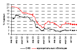 Кроме того, Минфин планирует начать выпускать государственные облигации со стандартными сроками обращения. Речь идет о трех- пяти- и десятилетних бумагах, и, скорее всего, реализация этого проекта начнется уже с 2005 года. Таким образом, у участников рынка появятся ориентиры по доходности, а сами бумаги будут выполнять роль эталонов по доходности для корпоративных и субфедеральных бумаг.