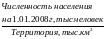 Число жителей на 1 км2 в 2008 году =