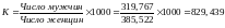 Вывод: на каждую 1000 женщин приходится 830 мужчин.