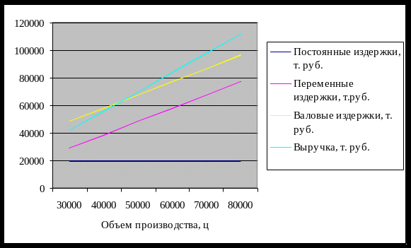 | Объем производства, ц | 30000 | 40000 | 50000 | 60000 | 70000 | 80000 |