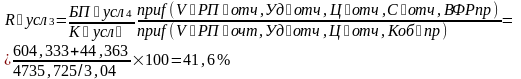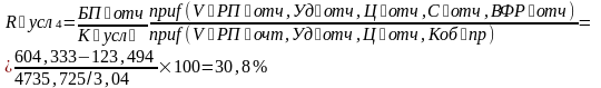 - финансовых результатов от прочих видов деятельности, не связанных с реализацией продукции ∆RВФР= RУСЛ4-R УСЛ3=30,8-41,6=-10,8п.п.;