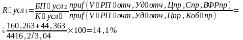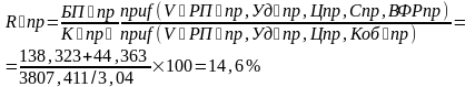 - удельного веса продукции ∆RУД= RУСЛ1-R ПР=14,1-14,6=-0,5п.п.;