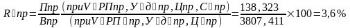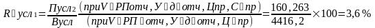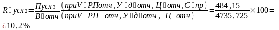 - удельного веса продукции ∆RУД= RУСЛ1-R ПР=3,6-3,6=0;