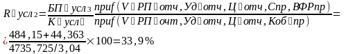 - цены продукции ∆RЦ= RУСЛ2-R УСЛ1=33,9-14,1=+19,8п.п.;