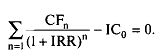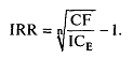 Если инвестиционный проект генерирует денежный доход только один раз (в конце периода его действия), то внутреннюю норму доходности для него можно определить, используя следующее уравнение: